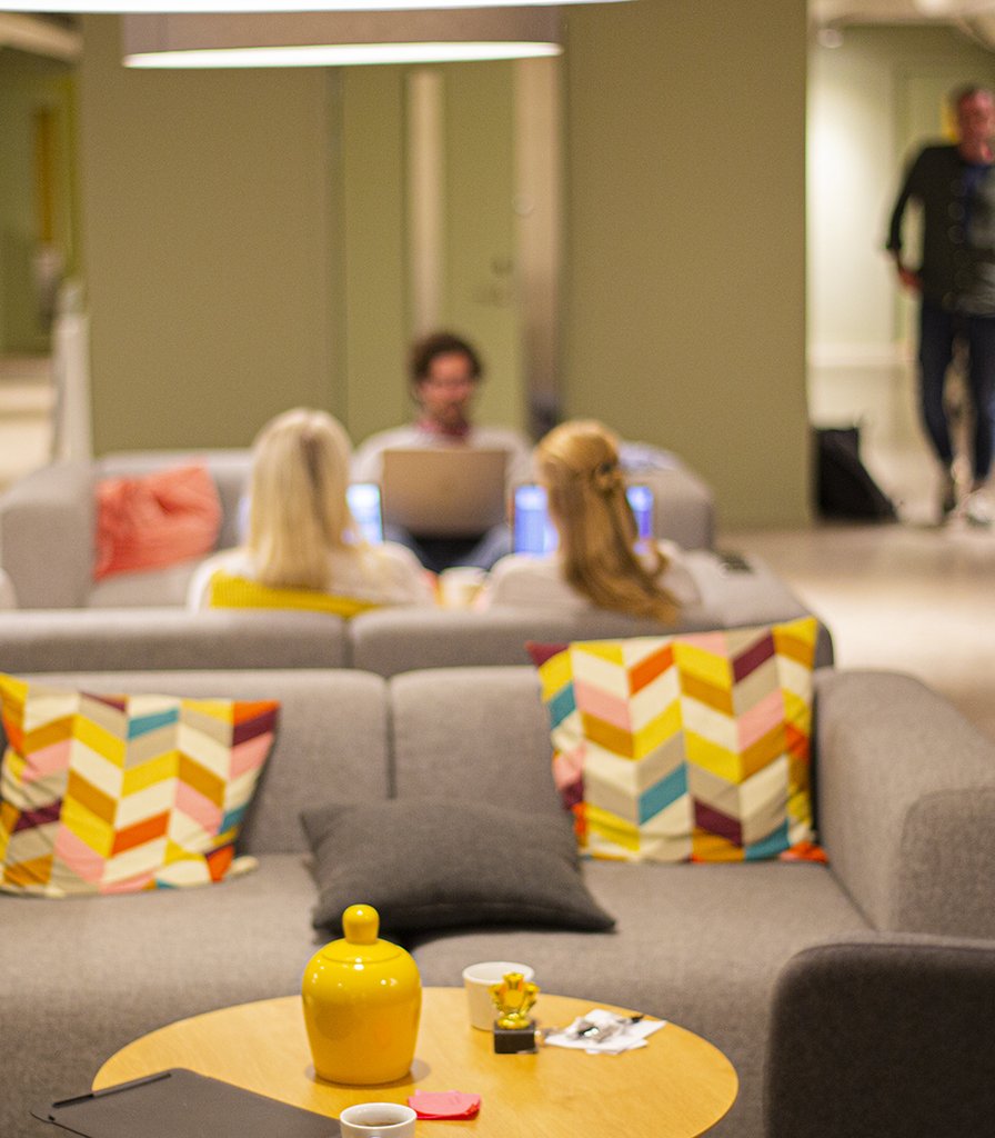 Vi tror på ett flexibelt arbetssättVi har valt aktivitetsbaserat, eller hybridkontor, som det ibland kallas. En vattendelare, har vi märkt, men vi tror starkt på konceptet. Kontorets ytor är designade utifrån att vi har olika behov för olika uppgifter. Det viktiga är att du själv funderar på var du kan göra ditt jobb med bäst förutsättningar för att få ut maximalt av hur kontoret är tänkt att fungera. Det är något vi tror vi kommer bli bättre på med tiden och med hjälp av varandra.