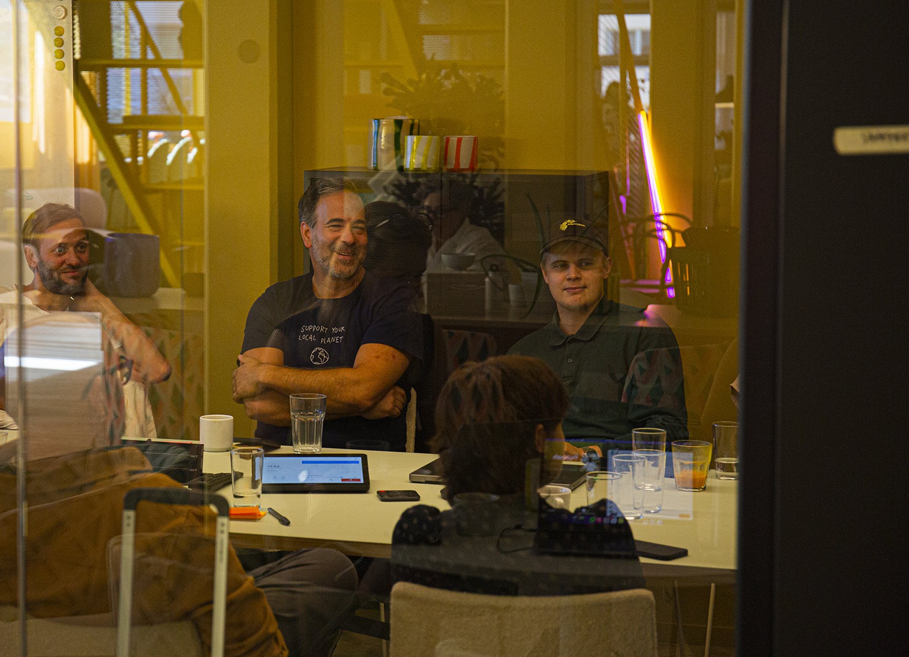 Det finns många sätt att jobba i Paradiset. Vi har skrivbord med skärm, coworking-bord, soffgrupper, trappan, tysta rum, mötesrum och rum för kortare digitala möten. Vissa frodas i miljö med hög puls, andra behöver stänga in sig för att göra ett bra jobb. Vi är alla olika och det är så vi vill ha det. För tydlighetens skull har vi delat upp kontoret i två delar som får representera olika jobbklimat: